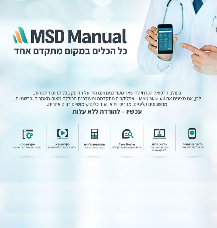אני מאשר/ת קבלת חומר שיווקי מחברת MSD באמצעות דואר אלקטרוני והודעות טקסט. לידיעתך, ניתן לעדכן את הפרטים שלך או להסיר את עצמך מרשימת התפוצה בכל עת.